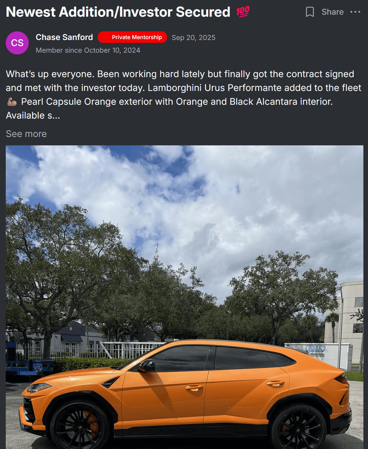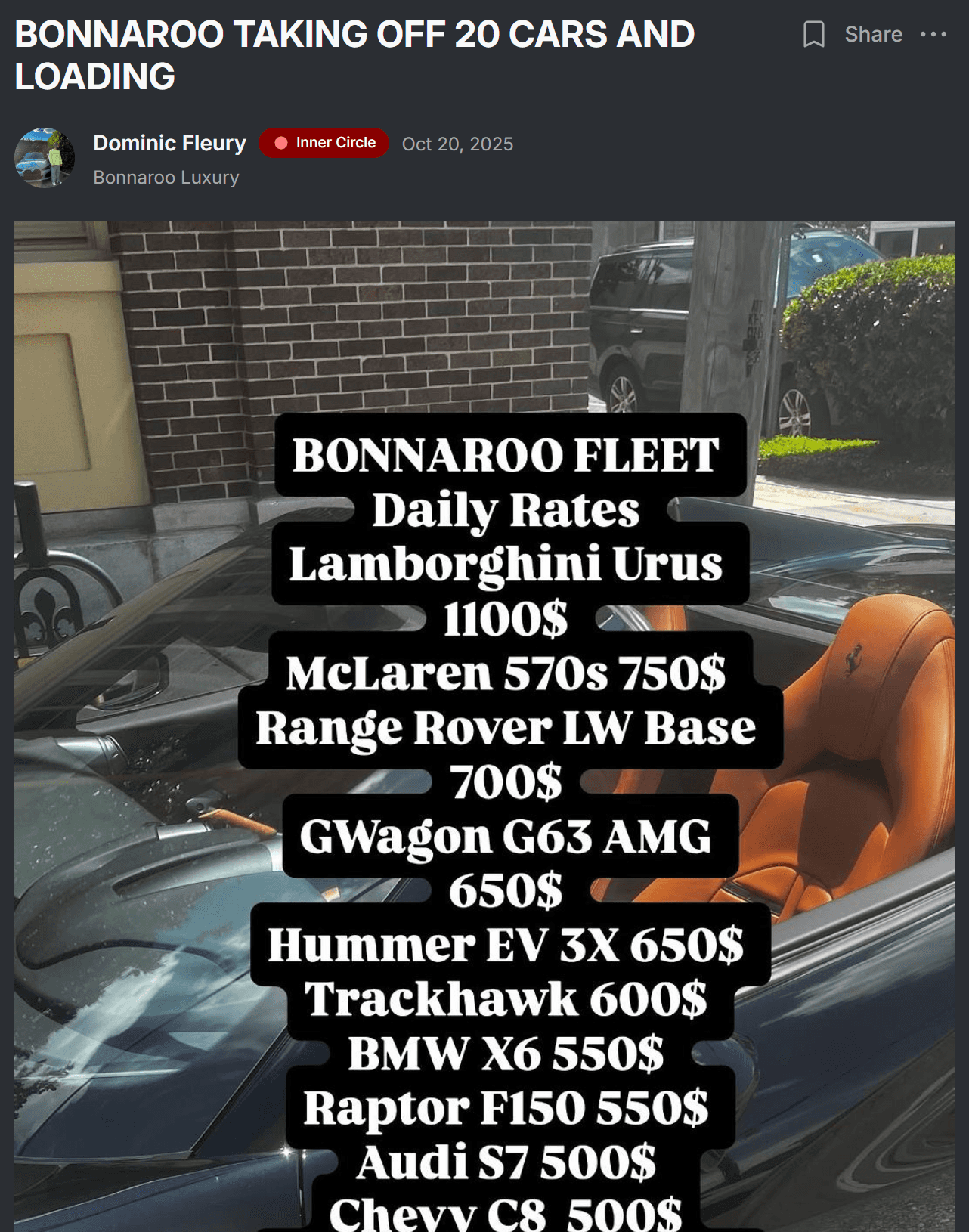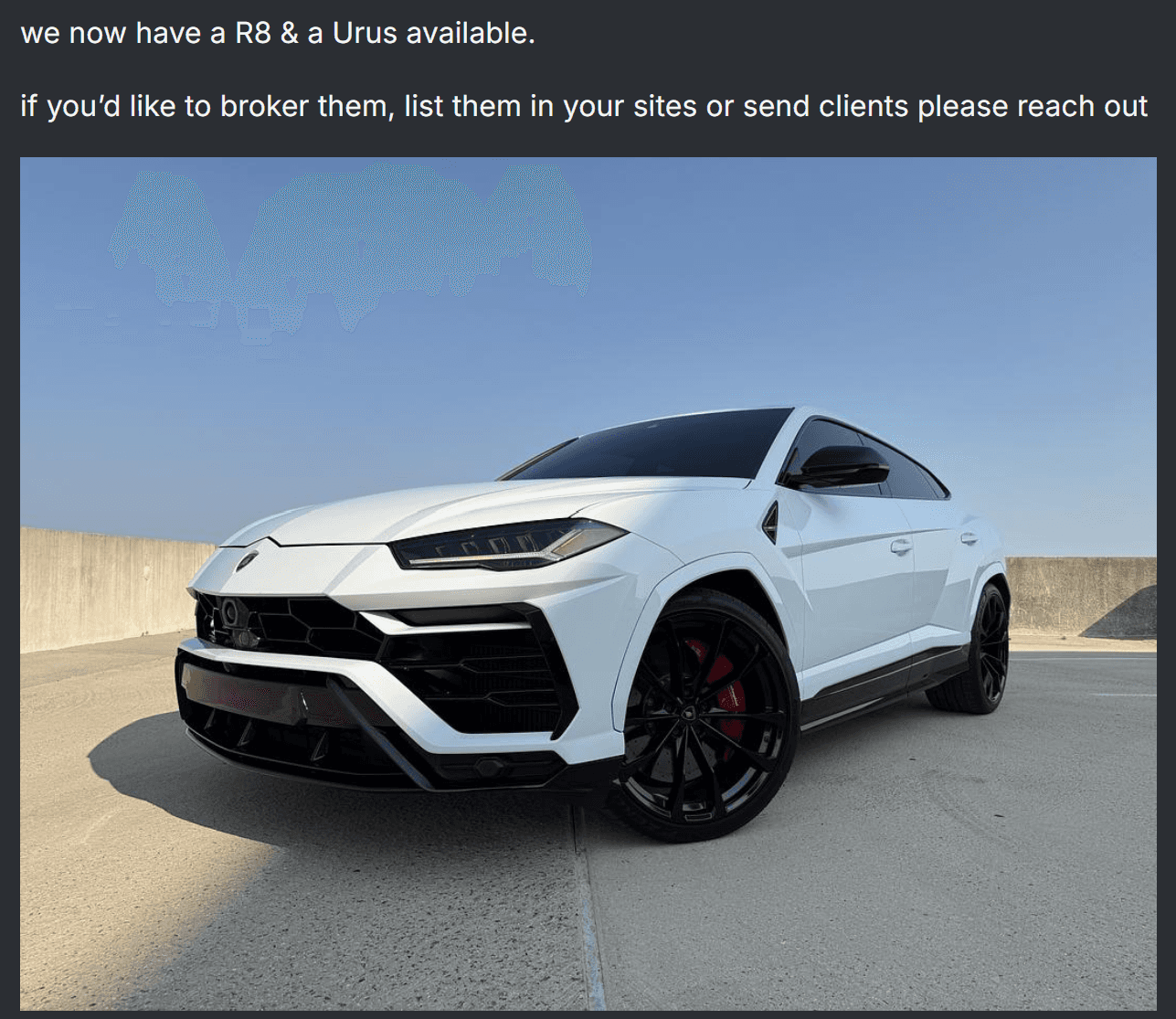 Middleman deals for clients with cars like Lamborghini, McLaren, Bugatti