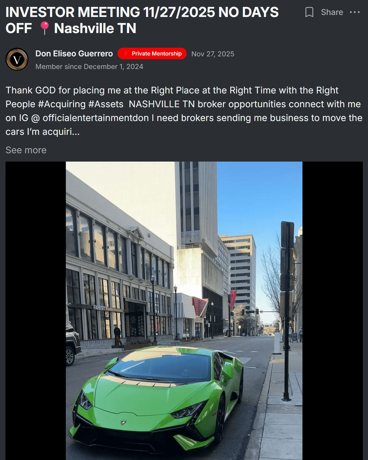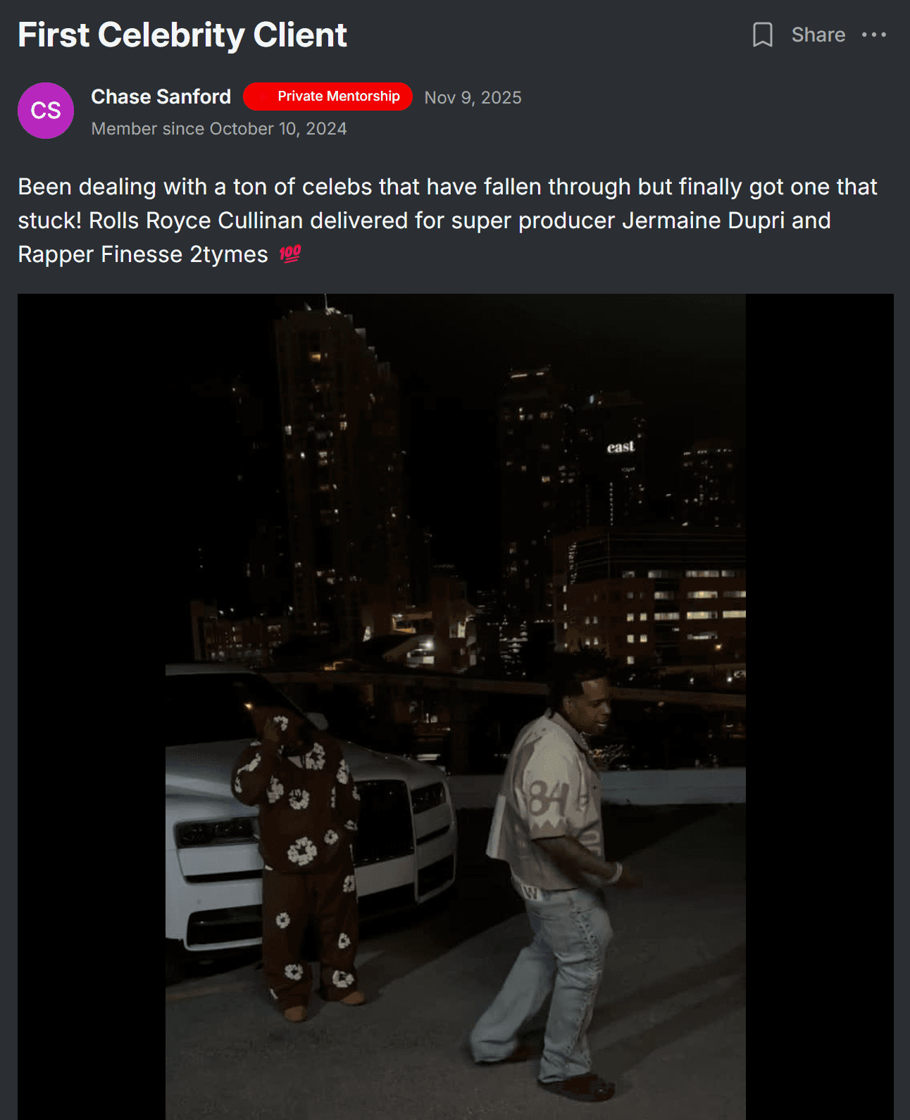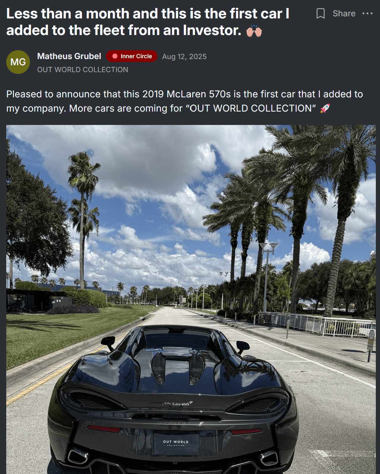 Middleman deals for clients with cars like Lamborghini, McLaren, Bugatti